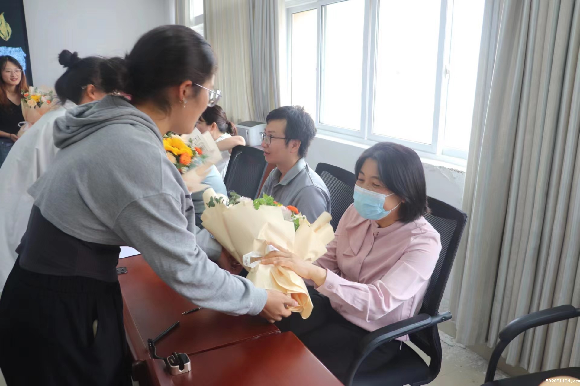 活动前期,我院团委学生会为全体老师精心挑选鲜花、准备贺卡。活动现场,全体老师依次入座,在欢笑声中,志愿者手捧鲜花进入会议室为老师送上鲜花和衷心的感谢。“没有鲜艳的舞台,没有掌声的独白,却用紧握着粉笔的手,让每一种颜色盛开。”同学们用最真挚的情感表达对老师的感恩之情,用行动诠释了心怀感恩、与爱同行。最后,全体老师与同学们合影留念。活动结束后,团委学生会组织志愿者为未能到场的老师送去鲜花和祝福。